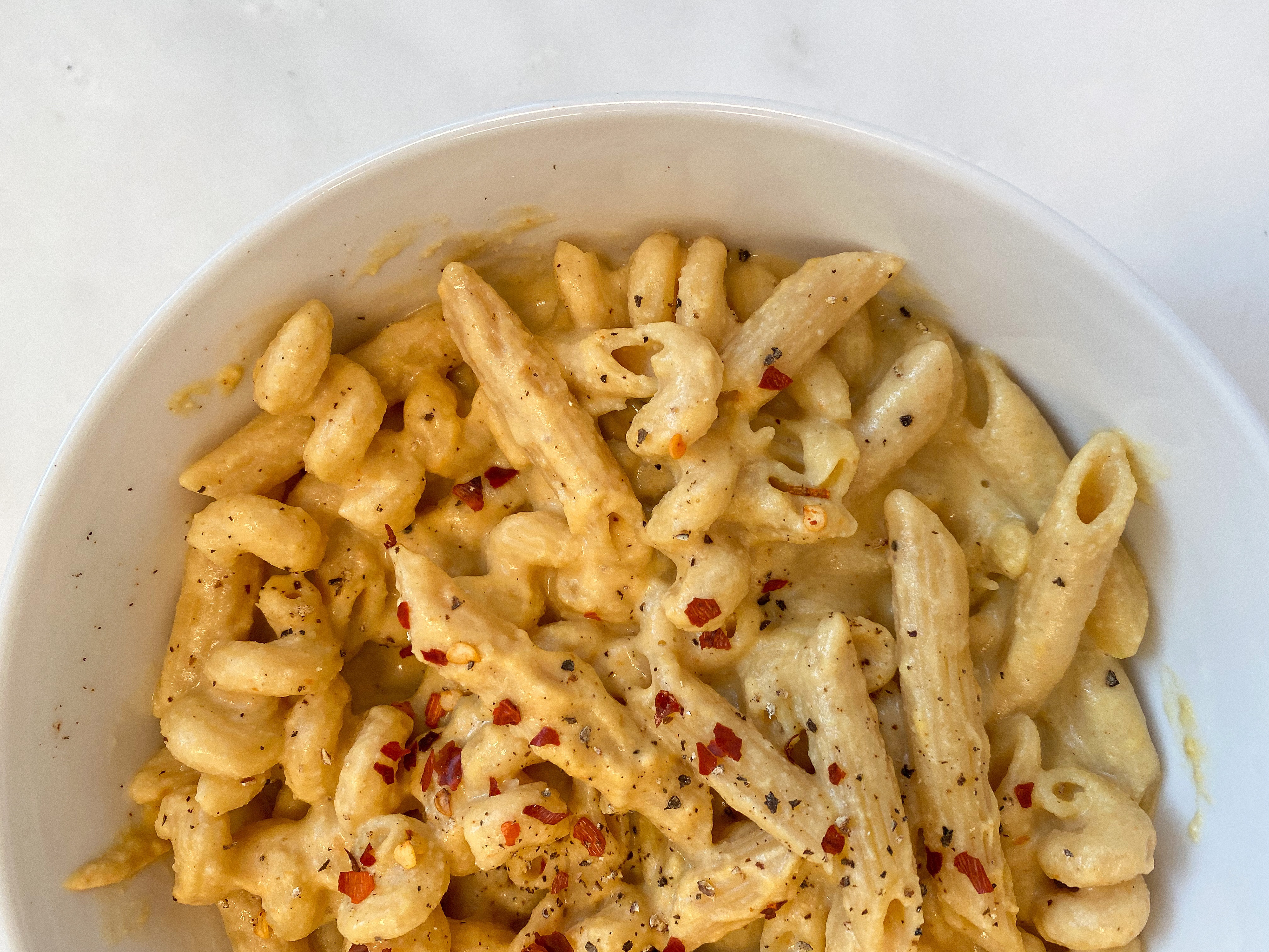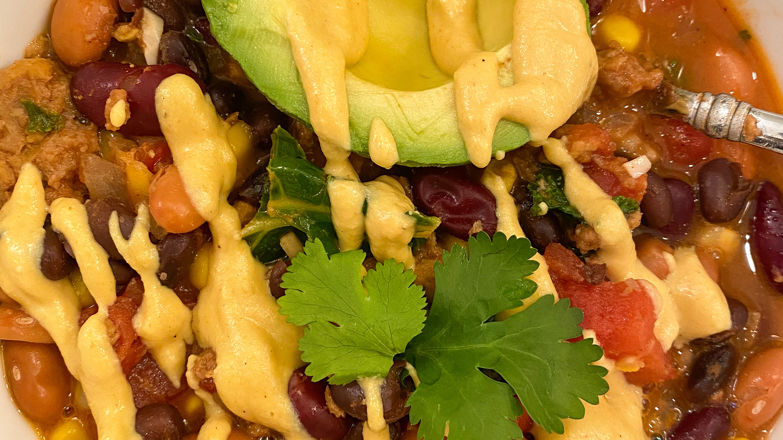 - In the blender, add 3/4 cup of water, 1 tsp of salt, 1/2 cup of nutritional yeast, dash of turmeric, 1/2 tsp chili powder, dash of cayenne, and as much black pepper as you like