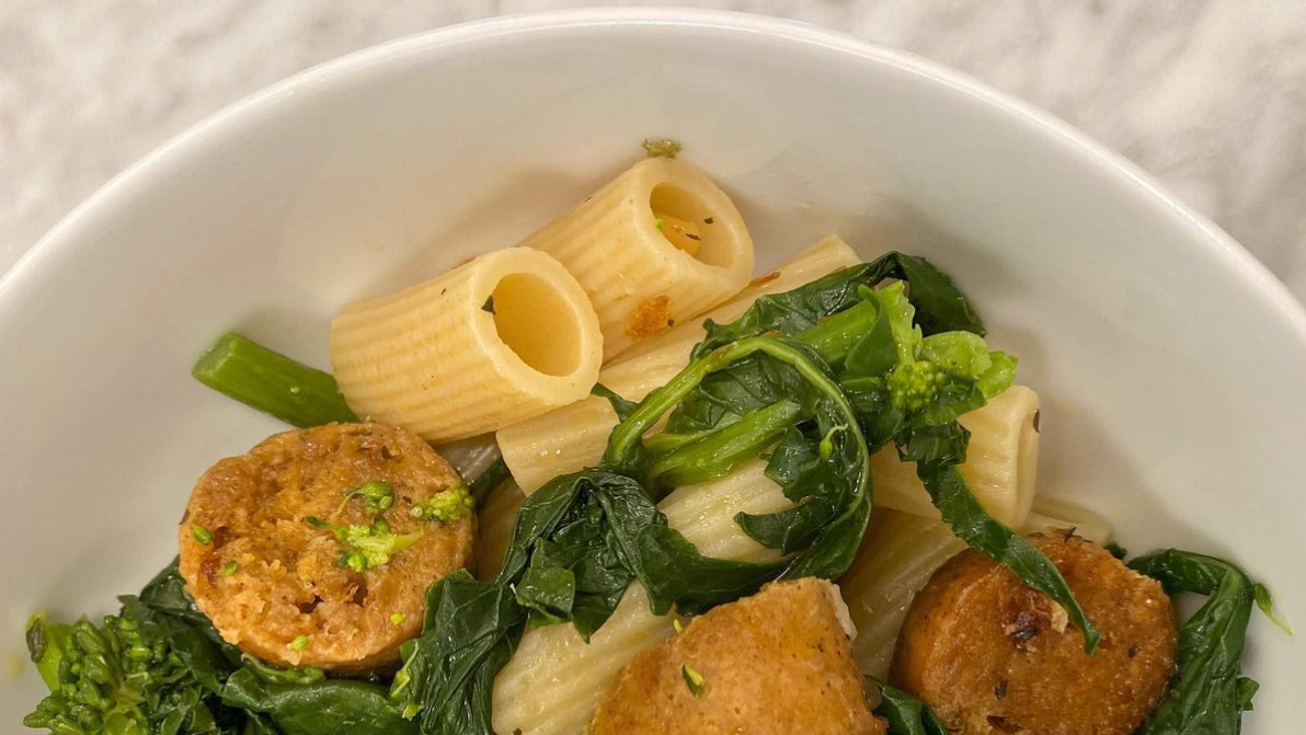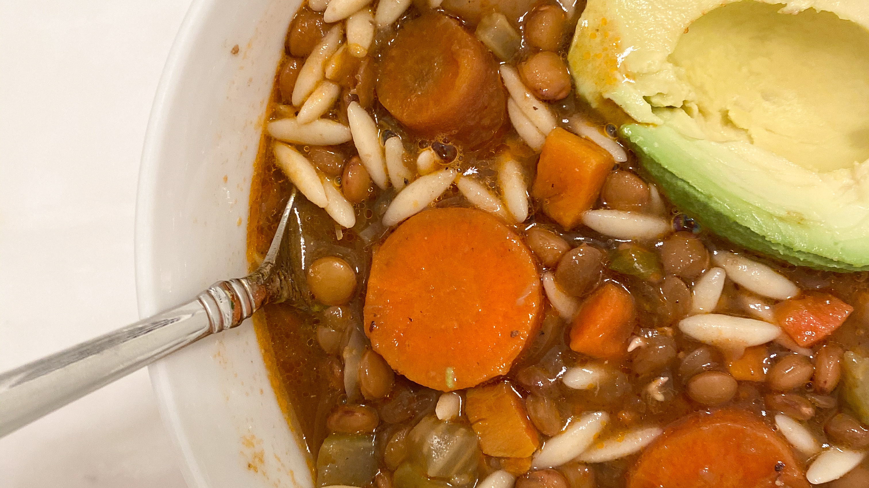 - In a pan, soften half an onion in olive oil and add a clove of garlic